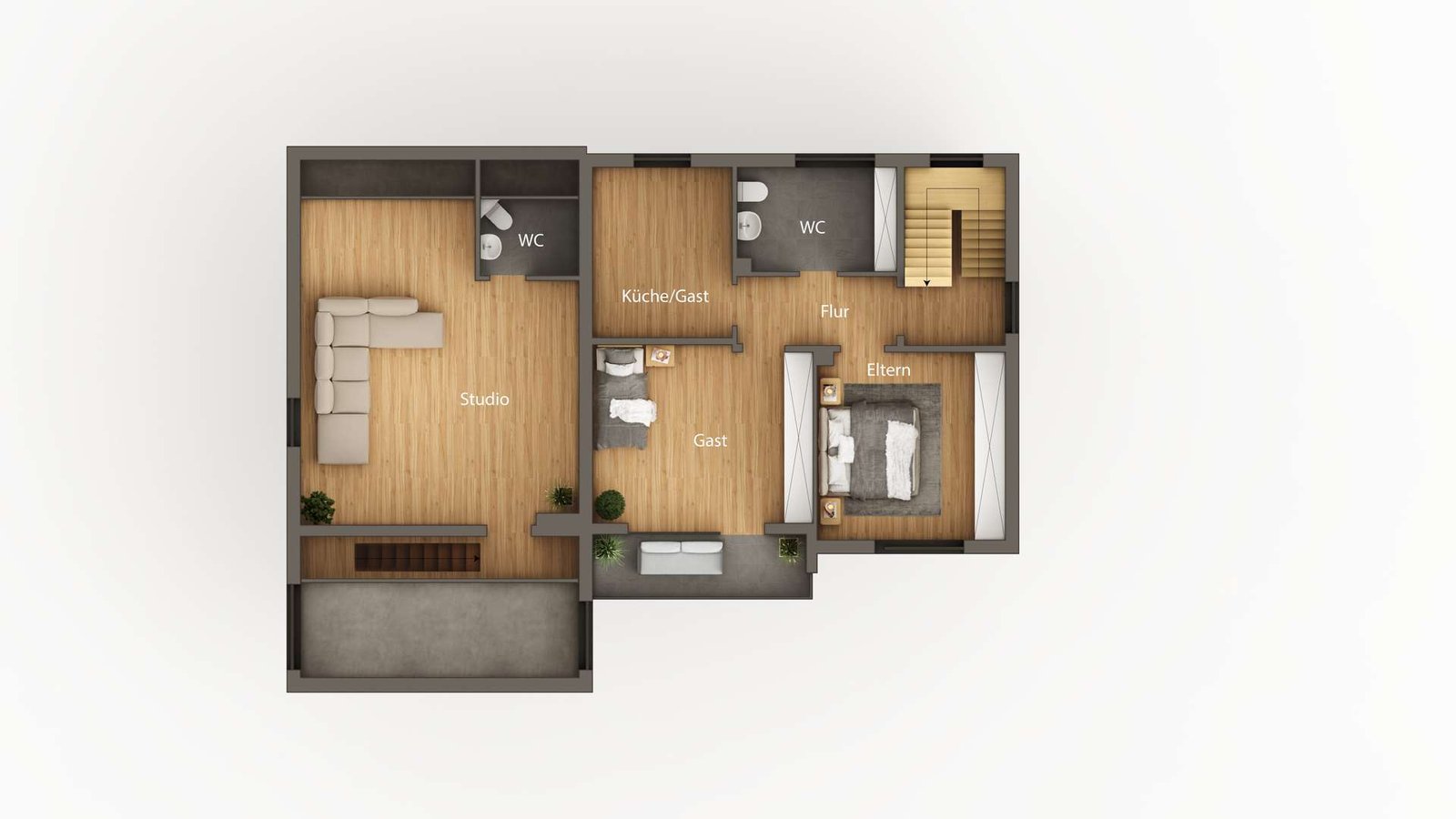 - Zwei Bäder und zusätzlich WC im Dachstudio