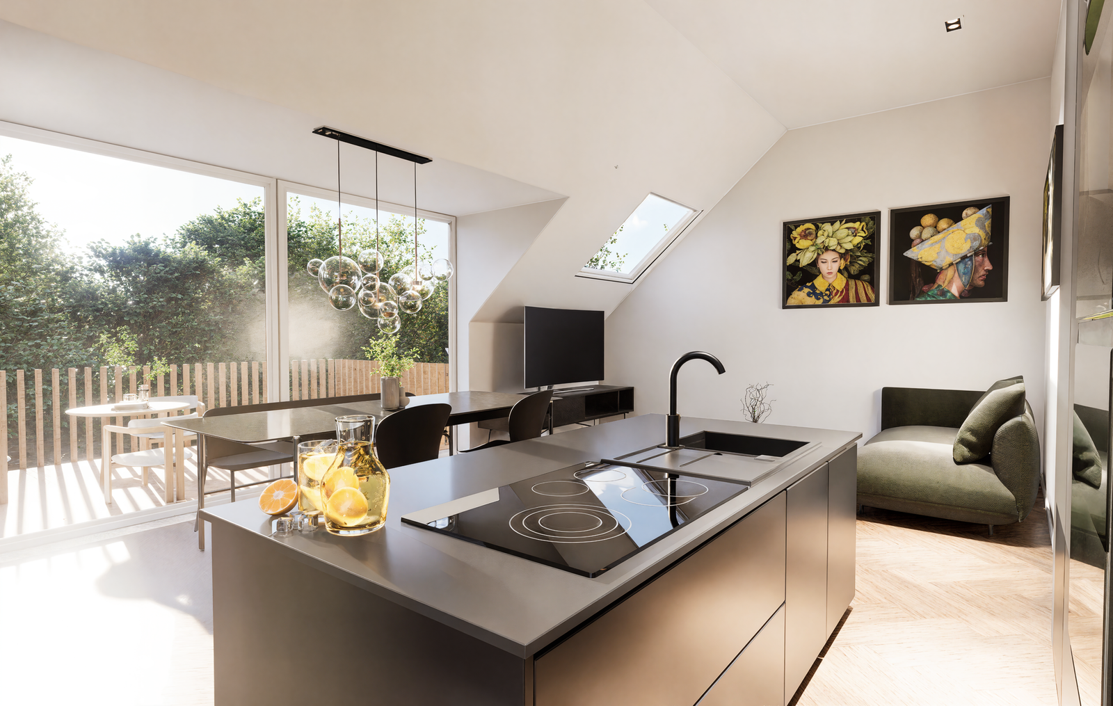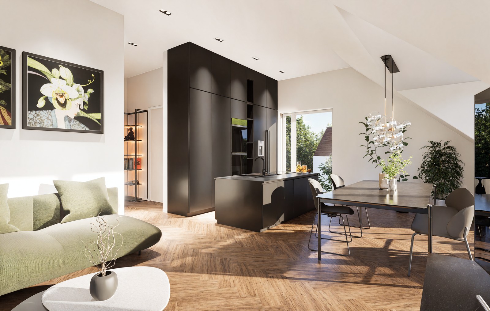 . Echtholzparkett und hochwertige Fliesen